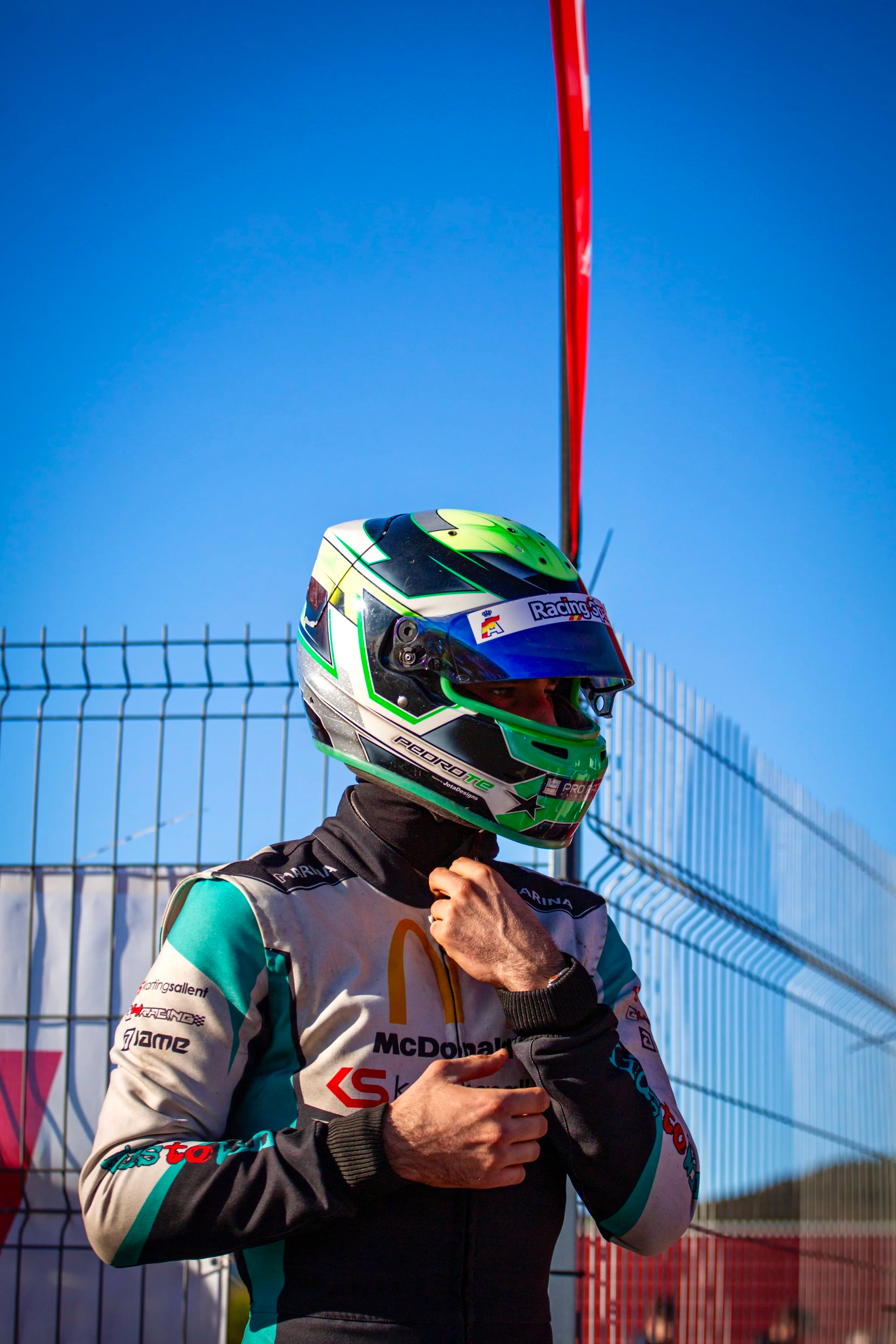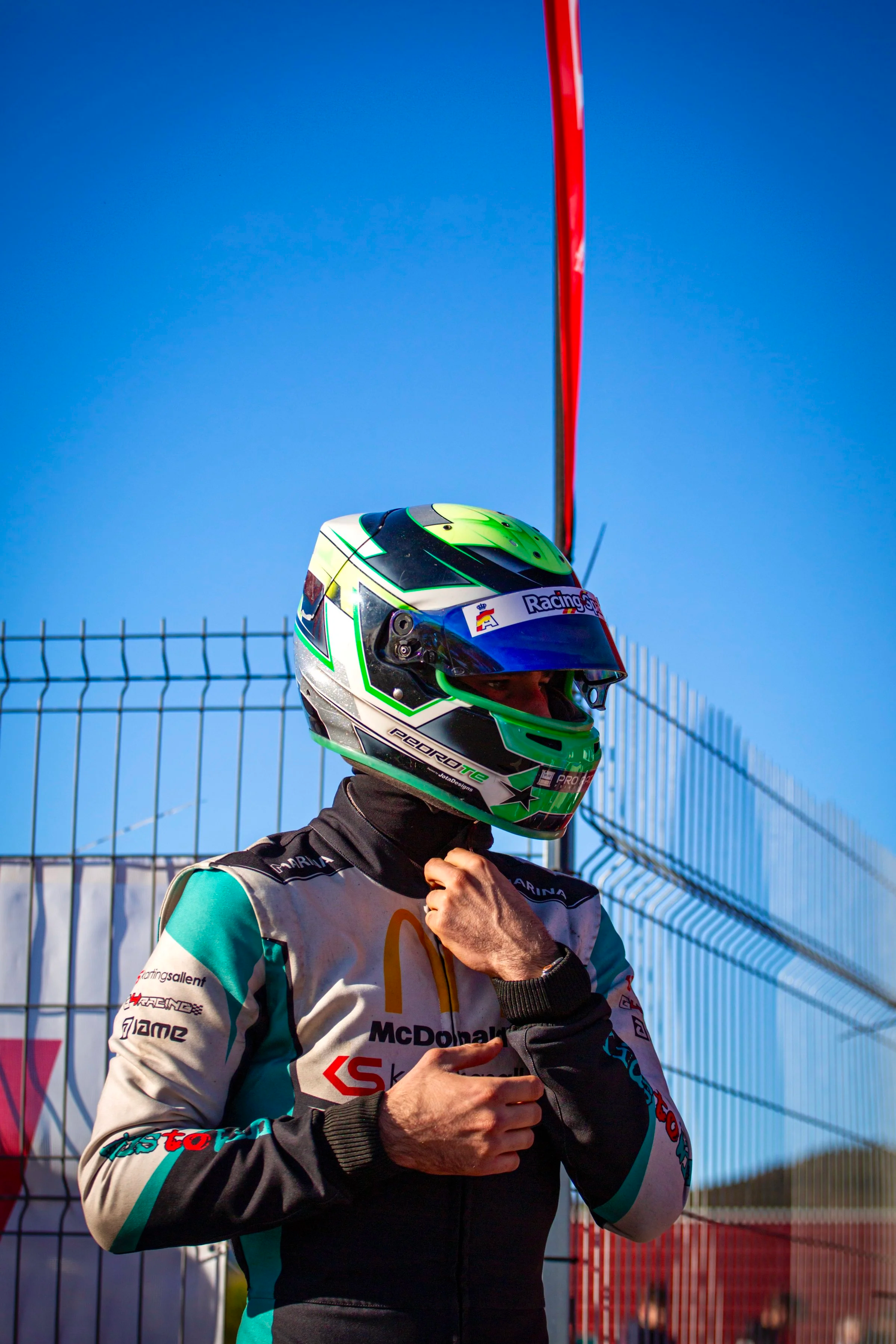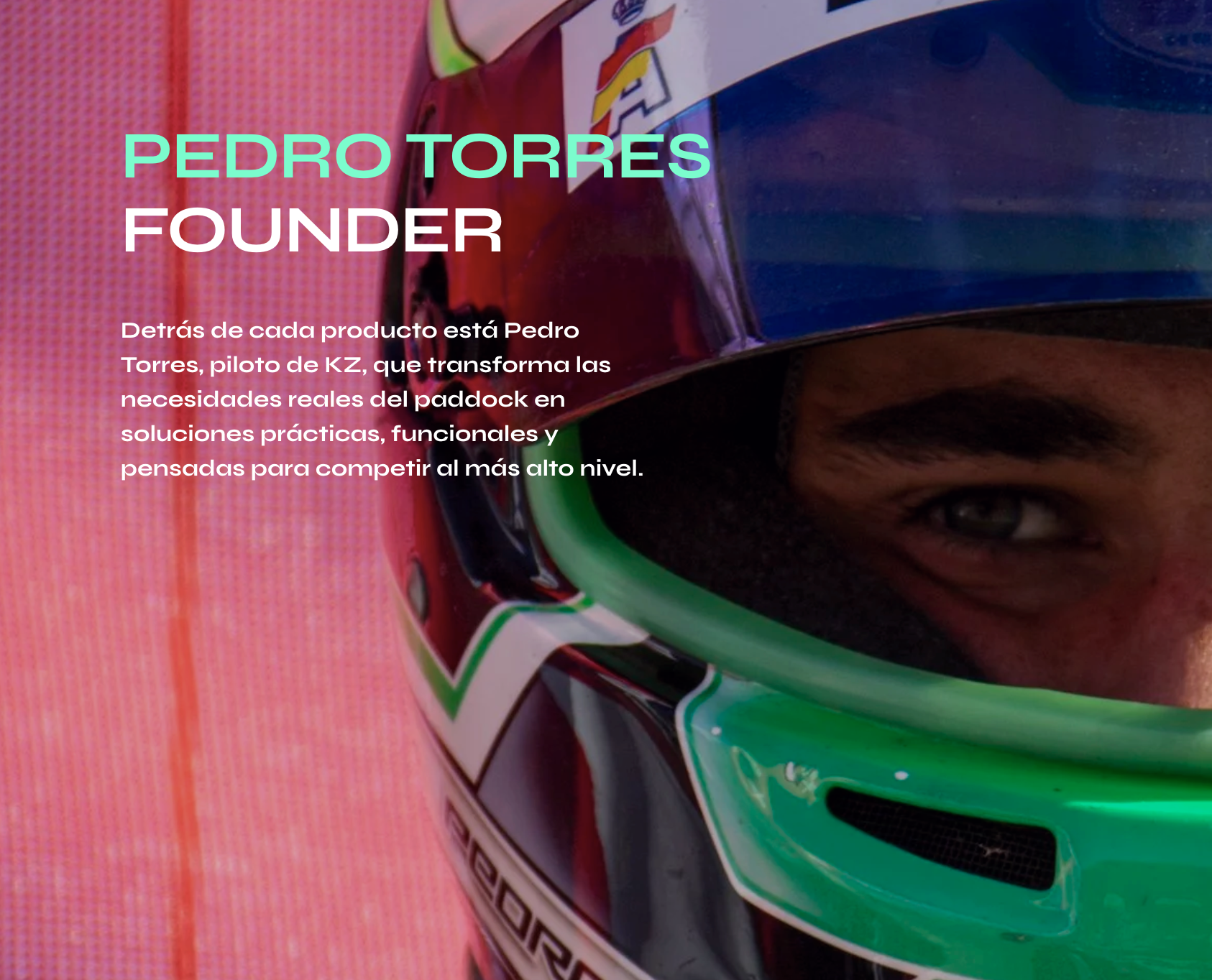 Detrás de cada producto está Pedro Torres, piloto de KZ, que transforma las necesidades reales del paddock en soluciones prácticas, funcionales y pensadas para competir al más alto nivel.